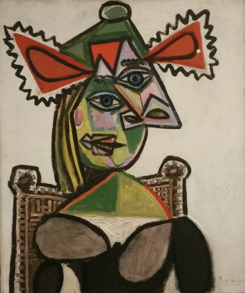 Pablo Picasso, ( 1881-1973 ) Femme au chapeau dans un fauteuil, huile sur toile 1939