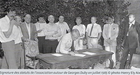 Appelé à prendre des charges de premier ordre (président de la septième chaîne), Mr Georges Duby, demanda à être déchargé de la présidence effective de l’Association. Madame Marie-Christine Gloton prit la rélève, en même temps que M Duby acceptait de prendre la présidence d’honneur. En 1987 Georges Duby a été élu à l’Académie française au fauteuil de Marcel Arland. (Son épée d’académicien fut exécutée sur un dessin de Pierre Soulages).