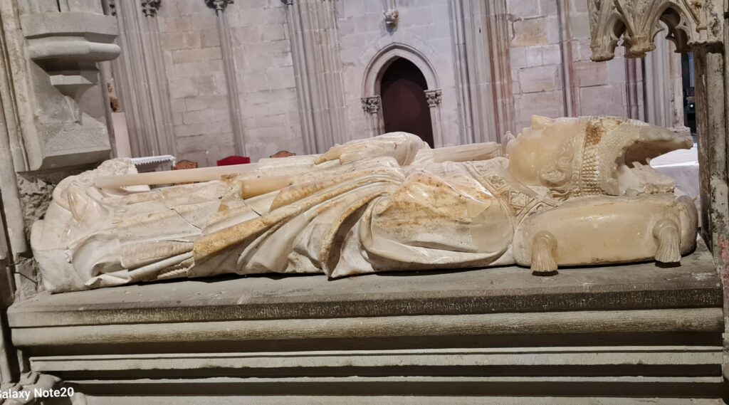 BASILIQUE SAINT-NAZAIRE et SAINT-CELSE — Gisant d’albâtre de Guillaume du Puy, évêque de Carcassonne de 1415 à 1420, situé à gauche du chœur — Photo Aamg 2023