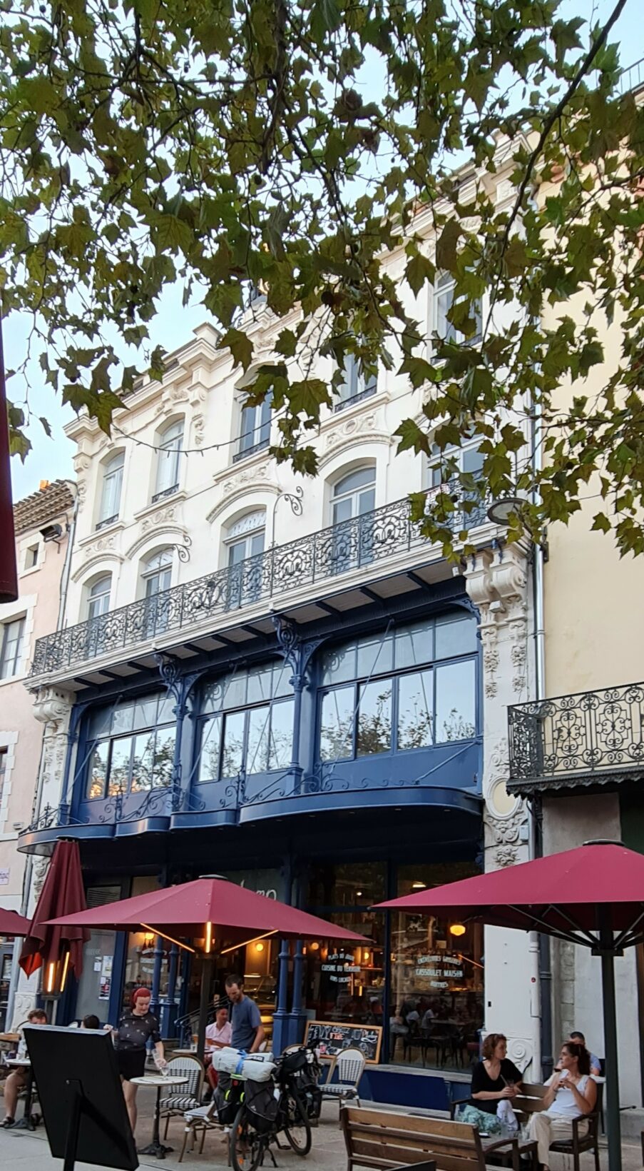 La diversité des styles permet une lecture chronologique de l’évolution urbaine de Carcassonne, tout en conservant une ambiance méridionale chaleureuse et commerçante — Photo Aamg 2023