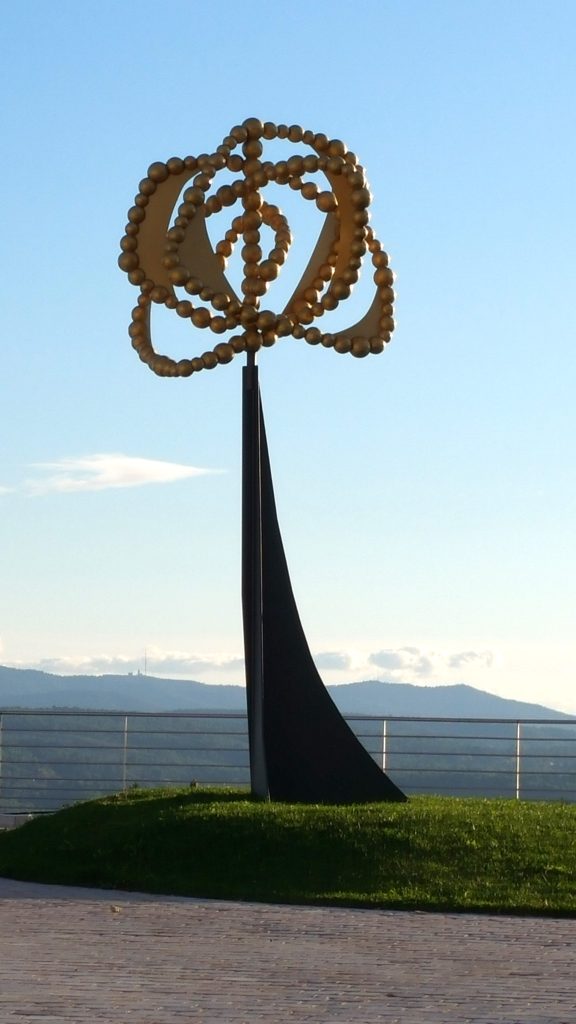 La Rose des vents : Environ 6 m de haut, 2 m de large 600 kg pour le pied en métal et 250 kg d’aluminium pour la rose montée sur roulement à billes . Photo©Aamg