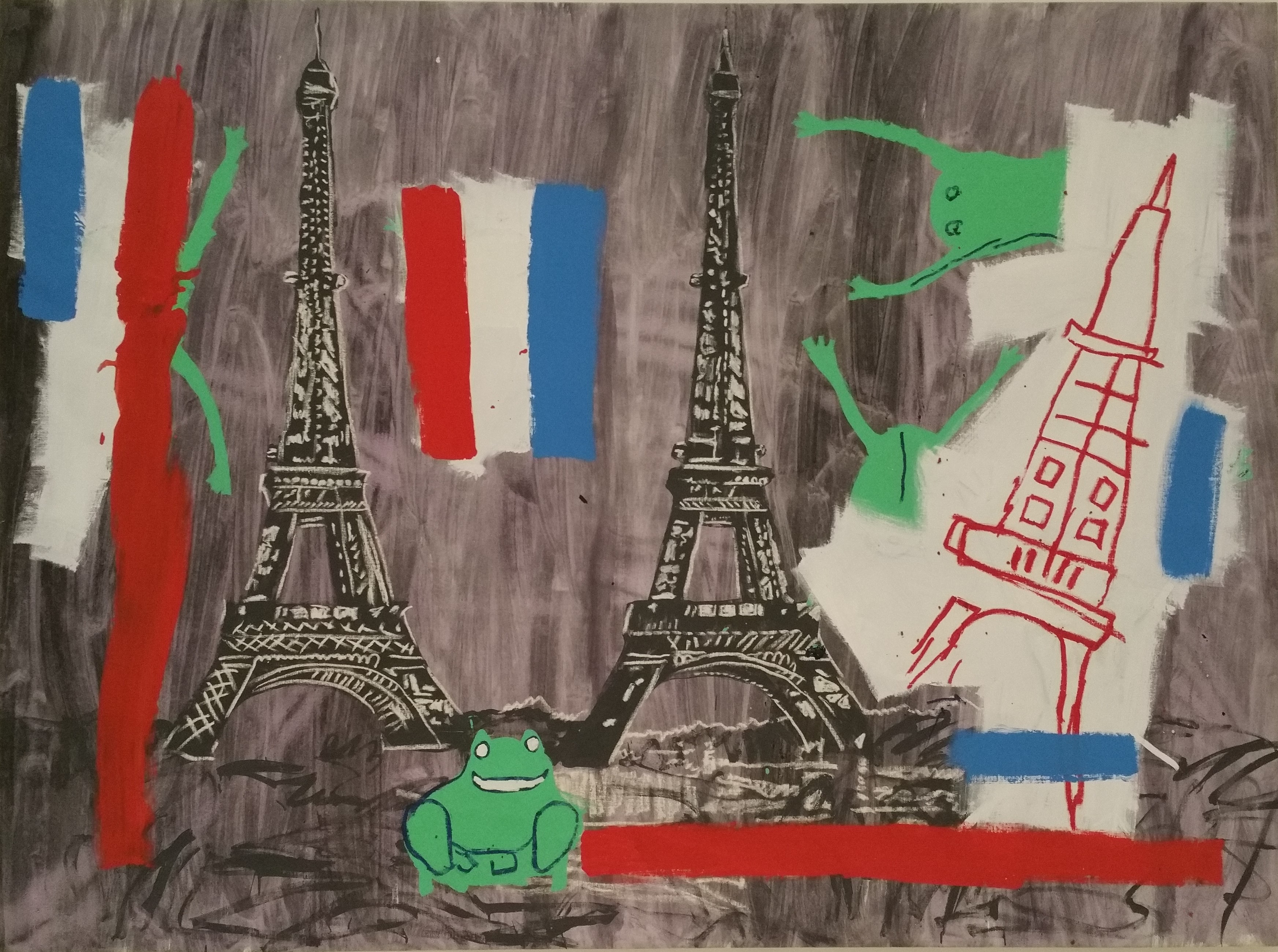 Jean-Michel Basquiat & Andy Warhol — Eiffel Tower, 1985 — acrylique sur toile – œuvre à 4 mains, réalisée en tandem par les deux grands artistes — Collection particulière. Photo Aamg