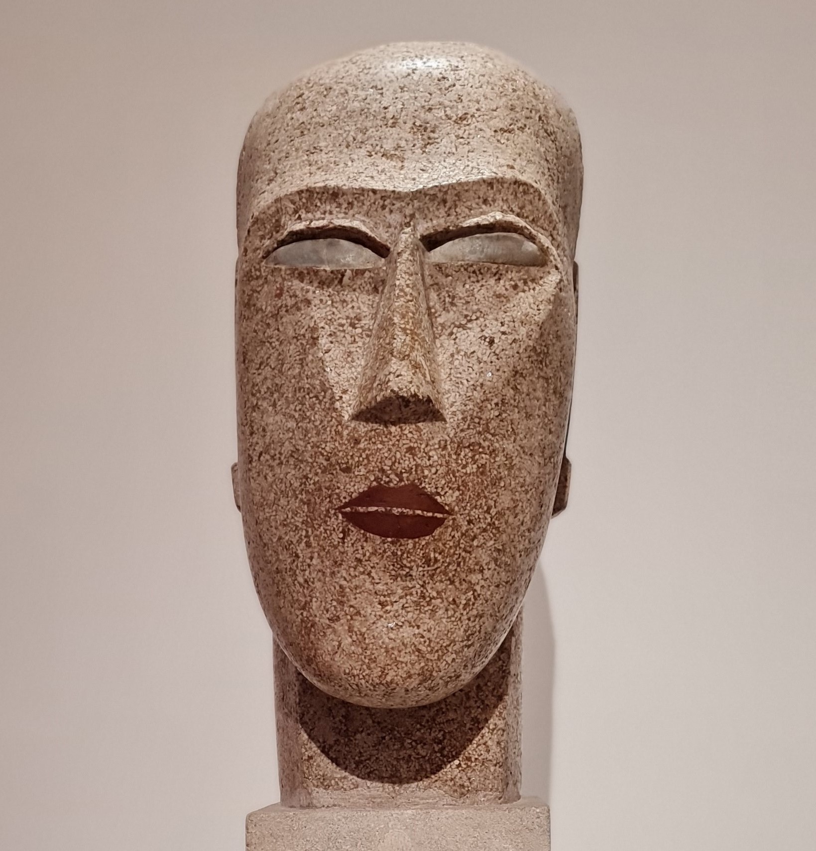 OSSIP ZADKINE — 1888-1967 — Tête de femme – [1924] – Pierre calcaire et incrustations de marbre gris, réhauts de couleur . Achat de la ville de Paris sur les fonds du legs de Valentine Prax . 2009 – Musée Zadkine. Photo Aamg