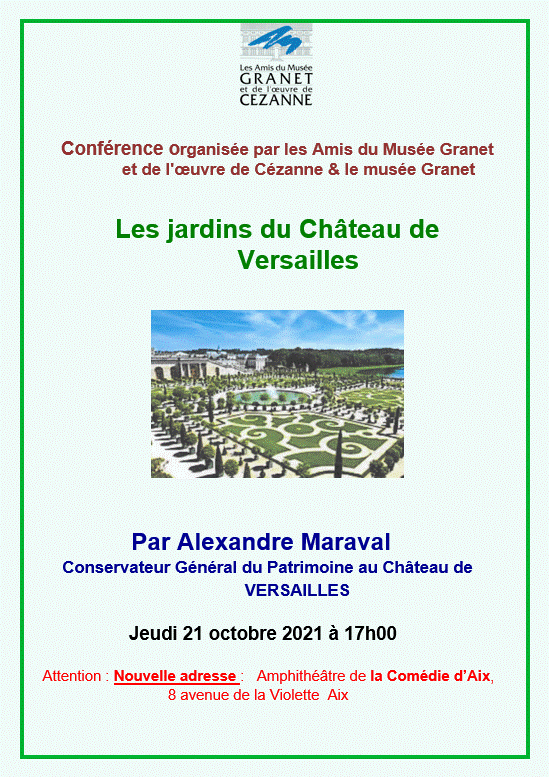 Conférence, les Jardins du Château de Versailles, jeudi 21 octobre à17h