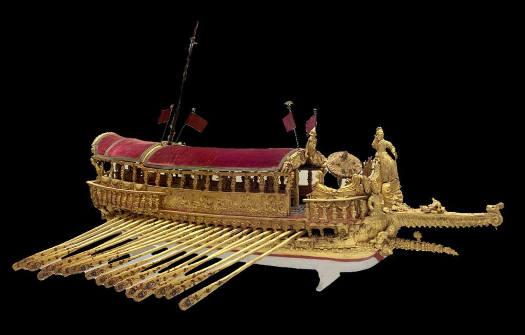 Le musée Granet possède la réplique du Bucentaure qui était en fait la deuxième galère réale construite par la Sérénissime République de Venise . (Bois doré 36 x 125 x 81cm fin XVII e .) Don Bourguignon de Fabregoules 1860 Photo©musée Granet