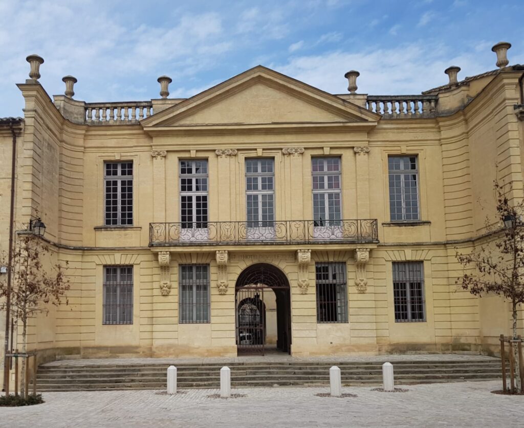 UZÉS — La mairie de cette ville médiévale est un édifice du XVIIIᵉ siècle au style classique français, construit entre 1767 et 1773 par l’architecte L. Boudon . Son architecture reflète l’esthétique civique de l’Ancien Régime : une façade en pierre claire, rythmée par des baies régulières, un balcon central orné de ferronneries, et un fronton triangulaire qui affirme la solennité du lieu. Photo Aamg CD